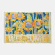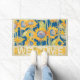 それはこのドアマットを飾る鮮やかで青い背景の黄色いヒマワリの庭です。 この設計特微青い背景の黄色いヒマワリの庭。 残っているあるまたはモノグラムのな名前にかもしれないように変わる単語の歓迎は次あります。 世界的に有名な芸術家の©Tim Coffeyによって設計されている。