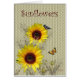 デジタル式に編まれた背景の高い草、ムギおよび乾燥されたポッドが付いている明るく黄色いヒマワリ。 鳥および蝶はデザインを完了します。