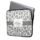 灰色のストライブ柄との白いそして灰色、あなたがあなたの名前およびモノグラムのイニシャルと個人化できる灰色の旗と研がれる白のヒョウのプリントのデザインのネオプレンのラップトップスリーブ!