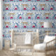 ヒョウ孔雀Chinoiserieフローラブルーとホワイト 壁紙
