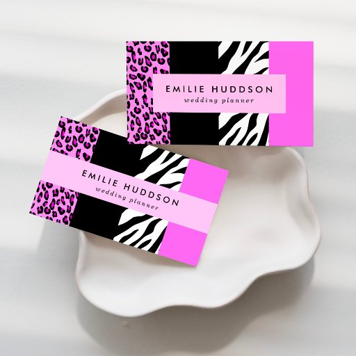 ヒョウ柄,ゼブラ柄,アニマルプリント,ピンク 名刺