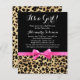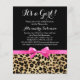 女の子だ!野生の動物サファリヒョウ鮮やかな熱鮮やかいネオンピンクの弓とリボンがプリントされたプリント。女の子の赤ん素晴らしだシャワーの好意は女のフェミニン女の子らしい女の子のためのファッションとモダンスタイルのためのしゃれている。