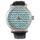 ヒョウ黒とティール(緑がかった色)プリント 腕時計
