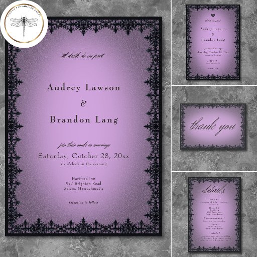 時代を超え結婚たエレガンスとミステリーを醸し出すビクトリアンサンキューカードでゴシッインスパイアクの魅力を引き上げる。アンティークヴィンテージを再現する感じように設計されたこのデザインは素晴らし、ヴィンテージに繊細な黒い錬鉄のスタイルゴシックを備え縁どて、紫色の背景に古い時代の魅力を感じさせる。あなたの愛の物語を展開し、あなたの日のように忘れられない招待を開く。Simple Farmhouse Pressによって作成。商品のカスタム購入や商品のリクエストについては、simplyfarmhousepress@gmail.comまでご連絡ください。