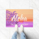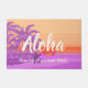 ピンク、コーラル、バイオレットのカラーウェイ。アロハのメッセージが、あなた自身のトロピカルパラダイスへ訪問者を歓迎します。 60年代のボードショーツとアロハシャツに着想を得たこのパターンは、オアフ島のノースショアのビッグサンセットでサーファーが波を待つ海岸線をピンストライプで表現しています。 メッセージはカスタマイズできます。