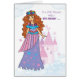 特別な小さな女の子が姉になると、彼女のハートは人生の新しい小さなベビーへの愛情と共に成長する。ピンクかわいらしの城の前にピンクと紫の王女が雲の上に立っている。お姉さんになる小さな女の子を祝う完璧なカード!