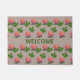 ベージドアマットの美しいピンクのバラ。ようこそ文字はパーソナライズされたできる。