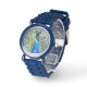 白い数字スタイリッシュでカラフルのファンテールの羽を持つ豪華で青い孔雀の写真のイメージを特色に時計。いくつかのスタイルからウォッチを選択