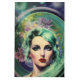 ビューティフルラベンダー&グリーンレトロスタイル宇宙女性 メタルプリント