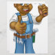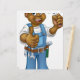 漫画の黒いビルダーまたはレンガの建築の労働者は、懸命帽子と親指を着てコテのハンドツールを置くマソン与えレンガを保持