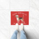 赤い背景にサンタハットを着たビーグルをフィーチャーした愛らしいフェスティバルのドormat。