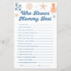 おもしろいをビーチの赤ちゃんシャワーに追加パーソナライズされた誰がMommyゲームを知最高のる!ボード上のベビーシャワーアイディアのベビーに最適な、このゲームは、沿岸のベビーシャワーテーマ、ビーチベビーシャワーテーマ、または海ベビーシャワーテーマと美しくフィットする。あなたは夏の赤ちゃんシャワーを計画するか、かわいい夏の赤ちゃんシャワーのテーマを探索するか、夏の赤ちゃんシャワーのアイディアを探すかどうかユニーク、このインタラクティブなゲームは、ゲストとモマ祝ムの存在を楽しませる必要があります!