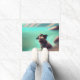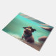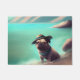 ビーチの芸術絵画を楽しむパグ ドアマット