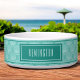 白い貝殻の模様を海の泡の緑の背景に描いたボウルデザインでペットをパンプル。ペットの名前をテンプレート欄に記入するか、新しいペット素晴らしの飼い主のためのギフトアイディアにする。