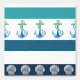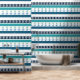 ビーチストライプブルーホワイトアクアティール(緑がかった色)いかり壁紙 壁紙