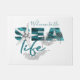 ビーチハウスアクアブルーシーライフタイポグラフィへようこそ ドアマット