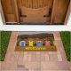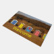 イギリス·デヴォン州サウントン·サンズで、カラフル·ビーチの小屋と青い空の写真が入ったドアマット。