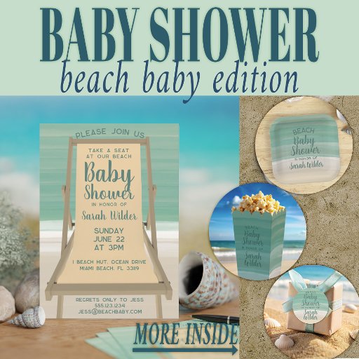熱帯のターコイズ海と砂のビーチの赤ちゃんシャワーのバナー。名前を付けろ!