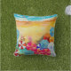 届いたクッションは、想像以上に美しいプリントで驚きました。縫製の仕上がりも綺麗でした。これほど綺麗なクッションなら、プレゼントにしても喜ばれると思いました。 青も黄色も期待通りの発色でした。大満足です。買ってよかった!