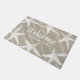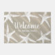 白ヒトデ、白脚本の「ウェルカム」文字、砂丘の背景、そしてあなたの家族の名前を白脚本で表したビーチのドアマット!