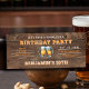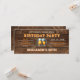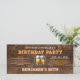 50歳男性への誕生日パーティーアイディアを見て?ビールフェスティバルチケットフォーマットの素朴なビールをテーマにしたバースデーパーティ招待状で、2つのビアグラスのイラストレーションとビールフェスティバル招待状のレイアウトが特徴で祝す。ビールテーマ付きの50番バースデーパーティ招待状は、簡単かつ完全に印刷可能でカスタマイズ、即時にダウンロードできる。50歳の男性のための完璧な醸造所やパブやレストランビールパーティの招待状、オクトーバーフェストや年間の任意の時間。茶色、テラコッタとオレンジ色の配色、素朴な黒板の背景の上。