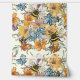 この作品鮮やかは、(昆虫)マルハナバチや花の花々が生き生きとした開花を特徴としている。フローラ要素はオレンジ描写色、ブルー色、イエロー色の豊かな色合いで、カラフルタペストリーを作り出し、ミツバチの細かいイラストと美しくコントラストする。クリーミーな背景は、花の活気とブンブン飛ぶミツバチの動的なエネルギーを高め、自然の調和を生き生きとし祝て、魅力的なパターンを生み出す。