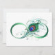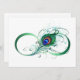 白い背景に明るい緑の孔雀の羽芸術的を持つ無限大のシンボル。タトゥースタイル。