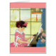ピアノを遊ぶピアノベンチに坐るピンクの服のかわいい小さな女の子。 ピアノは大きい窓の前に置かれます。 これは20世紀初頭からのヴィンテージのイラストレーションです。