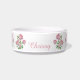 白パーソナライズされたい背景にピンクのバラのエレガントフローラプリントを有する犬猫用ペットボール。