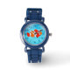 ピエロ魚は顔を見る黒いバンドと時間を教える子供に救済5の刻みの数学のリング。このスタイルは変化する簡単であり、幅広い選択の中から色を選ぶ「時」と「分」と言う。海の青い背景には黒い番号が付のまわりにいている。