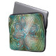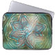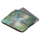 ピクセルの霧雨のテクスチャ上の光沢のある緑と青の花 ラップトップスリーブ