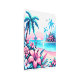 青い海、ヤシの木、ピンクの熱帯花の写真を描いた針先のようなピクサー芸術。