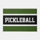このおもしろいデザインは、森の緑の背景に白いストライプで強調さストライプれた広い黒い森の中の大きなスポーツ文字を特徴とする。このテンプレートデザインの色やPICKLEBALL文字はパーソナライズされたよい。
