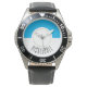 ピックボール円形スカイブルーホワイトカラーブロック 腕時計