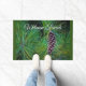 耐久性のあるドormatに特徴の美しい松の葉とコーン。素敵な第一印象!