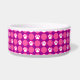 ライトそして暗いピンクの水玉模様は、白い子犬の足のプリントと紫色の背景に、あります。 より暗いピンクで輪郭を描かれる白い犬用の骨の中心のあなたの毛皮で覆われた友人の名前とのそれを個人化して下さい。