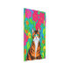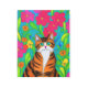 ピンクお洒落の花が咲いたストライプのオレンジ色の猫 メタルプリント