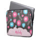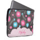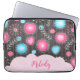 ピンクお洒落ブルーハートと花フローラ名 ラップトップスリーブ