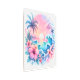 パームかわいらしの木々と豪華なパステルピンクと青の沿岸アート、熱帯の花の夕日と海波。おかわいらし家にトロピカルなアート!