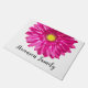 このウェルカムマットは、大きなピンクのガーベラデイジーと編集可能なファミリー名を持っている。お客様の名前またはメッセージを追加して、ゲストを自宅に迎える。リスト内の編集ツールを使用して名前をカスタマイズする。