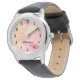 ピンクかわいらしフローラウォッチ名パーソナライズされた付き 腕時計
