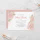 このデザインはピンクのフローラの植物バラ開花かわいらし、植物性の葉と、QRコード、ウェブサイトや贈り物のためのシンプルQRコード、トレンディーの赤ちゃんシャワー招待ミニマルな赤ちゃん赤ちゃんシャワー写真モダン、シックな甘い写真ガーリー、誕生の詳細を開始クラシック書き込み、デザインを赤面招待状をををsick。