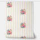 パステルかわいらしにピンクのバラの束が入った壁ストライプ紙