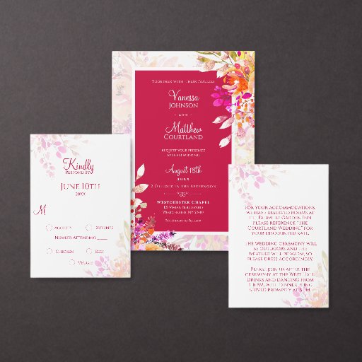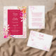 このエレガントな結婚式のRSVPカードは明るくオレンジはっきりした色とピンク色の水色の花を持っている。RSVPの日付と3つの食事オプションで簡単にパーソナライズ。ピンク素晴らしとオレンジの結婚テーマと春インスパイア、夏と秋のガーデンウェディングのために。私たちのコレクションにはマッチするアイテムが用意されている。
