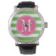 ピンクとグリーンストライプのカスタムモノグラム 腕時計