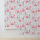 ピンクとグレーのお洒落フローラルパターン 壁紙