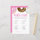 財布にリストの項目を確認しなさい。ポイントの多い人が勝者だ! |このおもしろい"財布の中の何"ゲームカードを赤ちゃんのシャワーに追加する。この赤ちゃんシャワートリビアゲームカードは、ピンク、ホワイト、チョコレートの水の色のドーナツにカラフルの散水を備えている。名前、イベント、日付を追加してパーソナライズこのドーナツ財布ゲームは女の子の赤シャワーのために完璧である。
