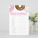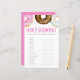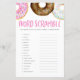 このおもしろいベビー単語スクランブルゲームカードをベビーシャワーに追加する。水の色ピンク、白、チョコレートのドーナツにカラフルを振りかける。名前、イベント、日付を追加してパーソナライズこの水色ドーナツ赤ちゃんシャワーのゲームは女の子の赤ちゃんシャワーのための完璧である。