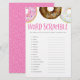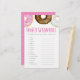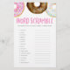 このおもしろいベビー単語スクランブルゲームカードをベビーシャワーに追加する。水の色ピンク、白、チョコレートのドーナツにカラフルを振りかける。名前、イベント、日付を追加してパーソナライズこの水色ドーナツ赤ちゃんシャワーのゲームは女の子の赤ちゃんシャワーのための完璧である。