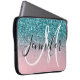 ピンクとティール(緑がかった色)グラデーショングリッターモノグラムの ラップトップスリーブ